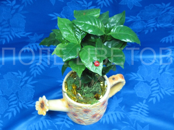 Состав: флористическое украшение, растение кофе, кашпо лейкаКрасивое ярко-зеленое растение кофе в яркой симпатичной желтой лейке будет не только Вашим любимым питомцем, но и украшением в Вашем доме. При правильном уходе растение кофе всегда будет здоровым, расцветет и даст плоды в виде зернышек кофе, подарит Вам свежий воздух и прекрасное настроение.