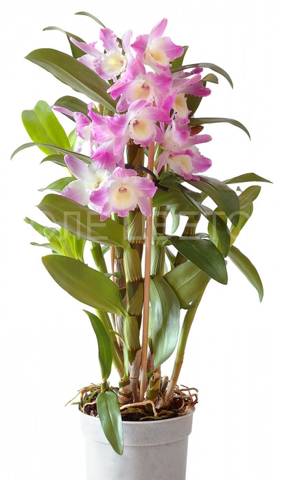 Состав: упаковка , растение орхидея дендробиумДендробиум – растение из семейства орхидных, которое является одним из самых крупных, распространенных в основном в тропических регионах Юго-Восточной Азии, в Австралии, в Новой Зеландии и Япониеи. Название «дендробиум» происходит от греческого – дерево и греческого – жизнь. Поэтому, особенно тропические орхидеи, выбирают своим местожительством деревья, используя их стволы в качестве опоры и постепенно поднимаясь вверх, поближе к свету. Существует множество различных размеров, форм и цветов окраски этого чудного растения. Период цветения дендробиума приходится на конец зимы — начало весны.Дендробиум-сильное крупное растение с мясистыми, длинными, прямостоячими длинными стеблями, постепенно утолщающимися кверху. Листья ланцетной формы, шириной 2,5 см и длиной около 20 см, в основном располагаются в верхней части. Нижний уровень растения усеян недоразвитыми листьями. На длинных цветоносах (до 60 см) располагаются цветки по 7 – 10 см (иногда 15 см). Окрас цветков варьирует от нежно-розового и до розово-фиолетового оттенка. Большинство таких растений цветут долгое время, около 1 – 2 месяцев, а у некоторых цветение продолжается на протяжении полугода. Зимой это растение лучше держать при температуре не ниже 18 — 19°С.
