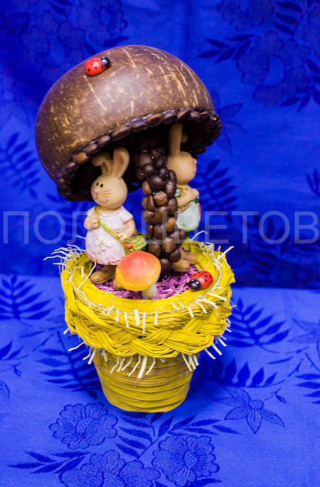 Состав: флористическое украшение, кашпо, сувенир, кофеКомпозиция из кофе Под зонтиком — подарок для настоящих кофеманов, которые будут в восторге от такого презента. Сейчас стало модным украшать интерьер сувенирами ручной работы. Кофейные комозиции – хит сезона. Кофейный сувенир, созданный умелыми руками флористов салона Поле цветов, может стать отличным декоративным элементом на Вашей кухне. Аромат настоящего кофе, витающий в доме, создает атмосферу тепла и уюта.